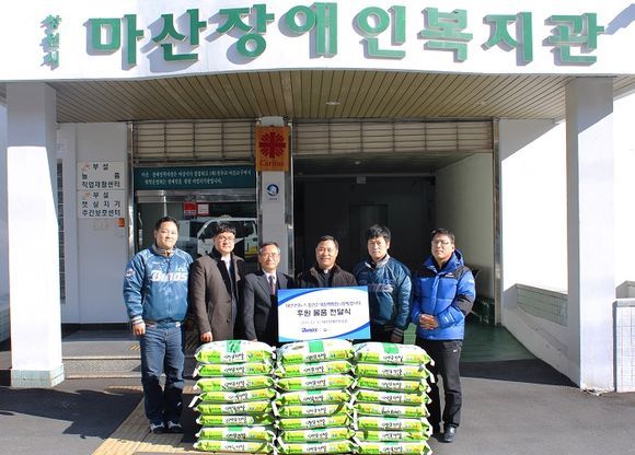 NC 다이노스는 13일 오전 창원시 마산합포구에 위치한 마산장애인복지관을 찾아 대동백화점 홈런존 운영으로 적립된 쌀 500kg을 전달했다.