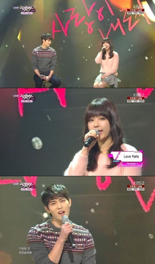 로맨틱 J는 13일 오후 6시 30분 방송된 KBS 2TV '뮤직뱅크'에서 곡 '사랑이 내려'를 열창했다.