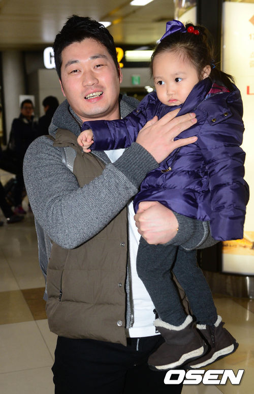 13일 오후 김포국제공항을 통해 귀국한 오승환이 조카 오다란 양과 카메라를 향해 포즈를 취하고 있다.