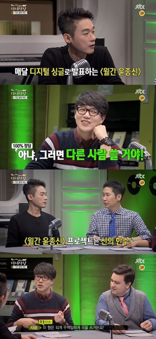 신동엽은 “월간 윤종신 프로젝트는 신의 한수다”라고 극찬했지만, 성시경은 “주위 희생 없이는 이루어지지 않는다"고 답했다.