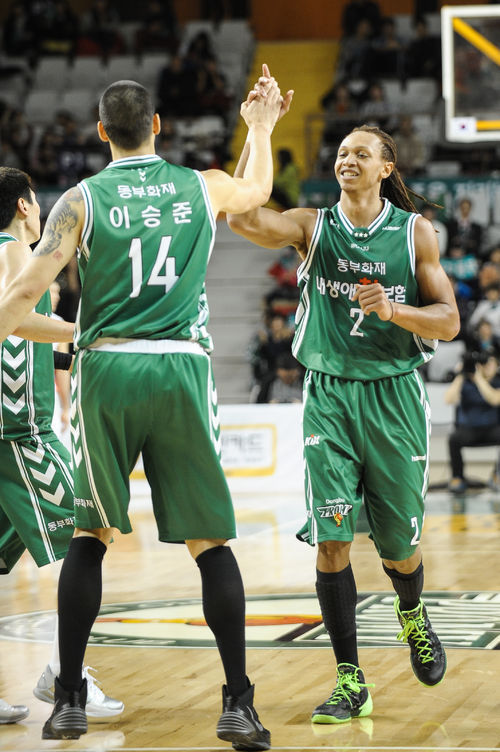 특히 이승준과 키스 렌들맨의 조합은 대박이었다. 하이포스트로 빠진 이승준은 렌들맨에게 꿀패스를 넣어주며 김주성이 하던 ‘컨트롤 타워’ 역할을 했다. 3쿼터 후반에 터진 두경민-김현호-이승준-렌들맨으로 이어진 4각 패스는 렌들맨의 '인 유어 페이스(in your face)' 덩크슛으로 이어졌다. 4쿼터 크게 점수 차를 벌린 렌들맨은 벤치로 돌아와 이승준에게 헤드락을 걸었다. 동부벤치가 이렇게 화기애애한 것은 올 시즌 처음이었다. 렌들맨은 KBL데뷔 후 최고인 27점, 9리바운드를 기록했다.