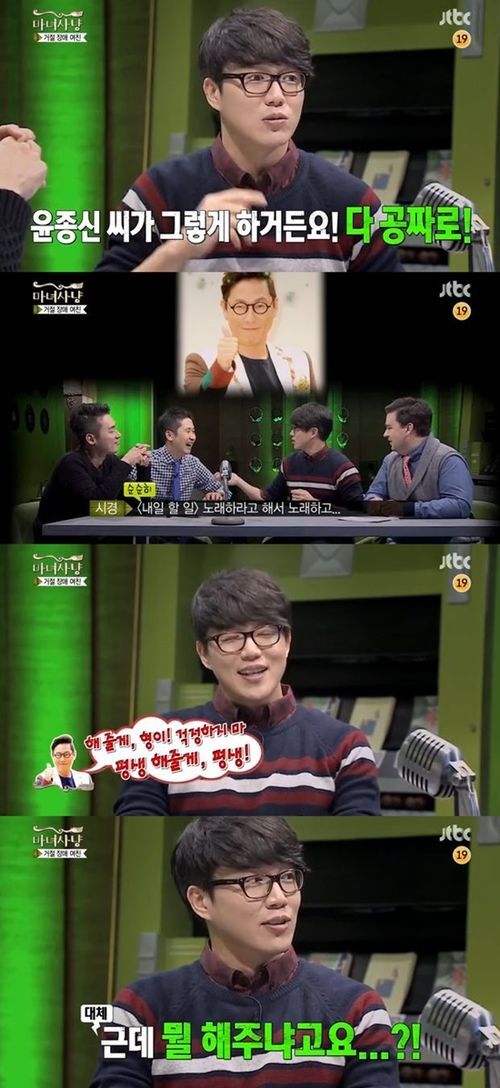 한편 이날 방송에서 성시경은 윤종신이 하루 10곡씩 대량생산 작곡을 한다고 폭로하기도 했다.
