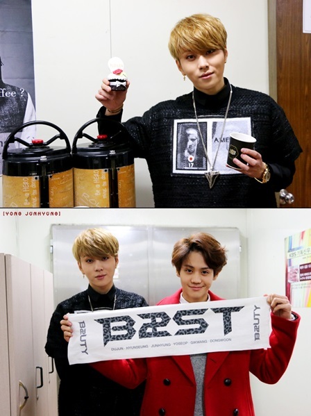 또 이날 비스트의 멤버 양요섭은 용준형의 솔로 데뷔 무대를 응원하기 위해 공식 팬클럽 슬로건을 목에 걸고 사전 녹화 현장을 찾아 비스트의 우정을 과시하기도 했다.