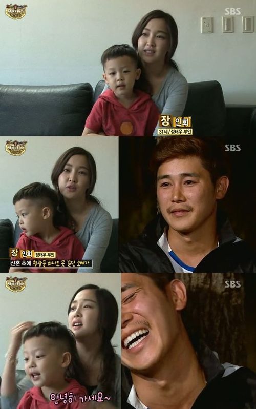정태우 아내의 미모가 때아닌 화제를 모았다. 병만족 멤버들을 향해 가족들이 보낸 영상편지를 통해서다. 정태우의 아들과 함께 영상에 등장한 아내 장인희 씨는 청순미모와 함께 백옥 같은 피부를 뽐내 눈길을 끌었다.