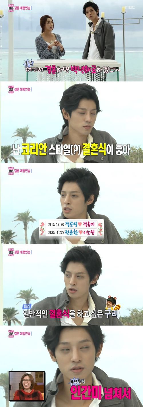 이에 정준영은 "난 코리안 스타일이 좋다. 단체로 뷔페 먹고 북적북적한 게 좋다. 인간미 넘친다"고 정유미와 정반대의 결혼식 로망을 밝혔다.