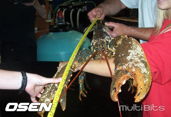 [OSEN=이슈팀] 8kg 대형 랍스터가 잠수부한테 잡혀서 화제를 모으고 있다. 큼직한 8kg 대형 랍스터가 식욕을 돋구기는 커녕 오히려 그 커다란 집게발에 공포심을 느낄 정도다. 보통 3~4kg짜리 랍스터 구경하기도 힘든 판국에 무려 8kg 대형 랍스터라는 가히 몬스터급이다.