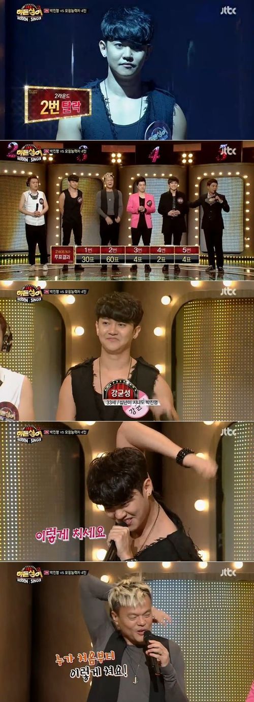 그룹 노을 강균성이 JTBC '히든싱어2' 박진영 편에 모창능력자로 등장해 2라운드에서 탈락했다.