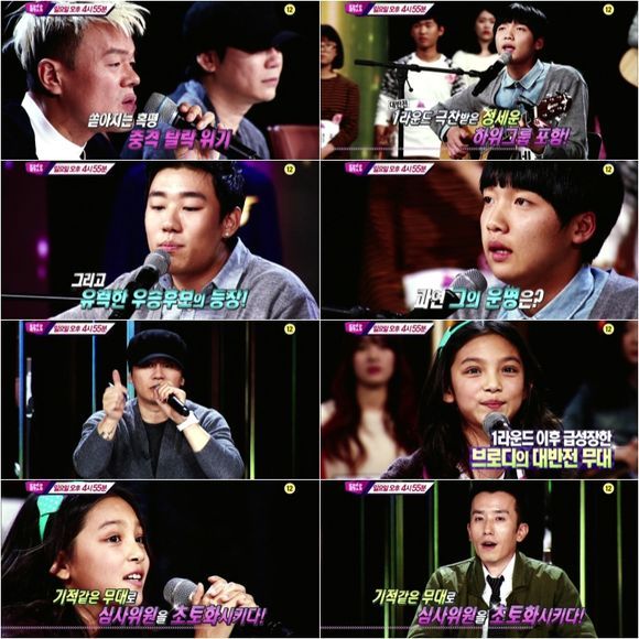 반면 지난 1라운드에서 자작곡 ‘엄마 잠깐만요’로 양현석-박진영-유희열의 사랑을 한 몸에 받았던 정세운은 ‘혹평 세례’를 받았다. 세 심사위원으로부터 “다른 장르의 악동뮤지션 같다”, “우리나라의 ‘제이슨 므라즈’ 탄생이다” 등의 찬사를 받았던 정세운에게 가차 없는 지적이 쏟아진 것. 유희열이 무대를 중단시킨데 이어 박진영이 “이 순간만큼은 ‘하’ 그룹이다. 무슨 말을 하려는 건지 모르겠다”고 날을 세우는 모습이 펼쳐져 긴장감을 드리웠다.