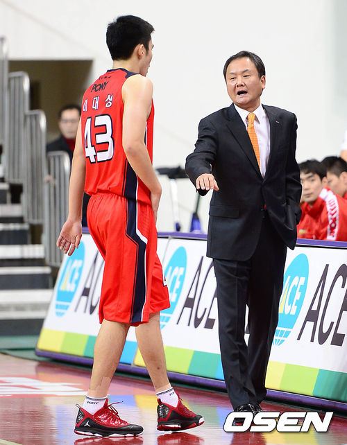 2쿼터 모비스 유재학 감독이 교체되어 들어가는 이대성과 이야기를 하고 있다.