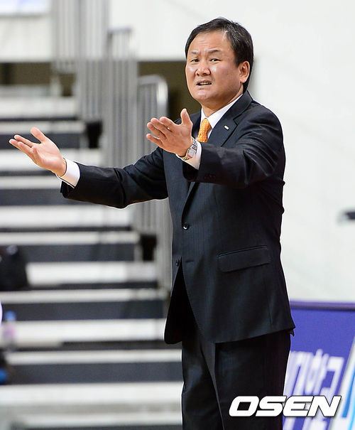 2쿼터 모비스 유재학 감독이 선수들에게 작전을 지시하고 있다.