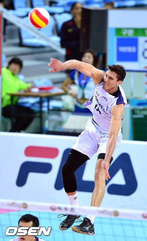 15일 오후 인천 계양체육관에서 열린 '2013-2014 NH농협 V리그' 남자부 대한항공과 삼성화재의 경기, 2세트 대한항공 마이클이 서브에이스를 성공하고 있다.