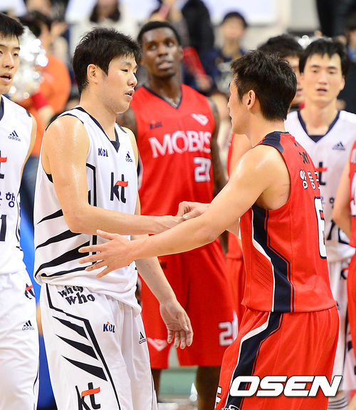 경기 종료 후 모비스 양동근이 KT 조성민과 인사를 나누고 있다./sunday@osen.co.kr