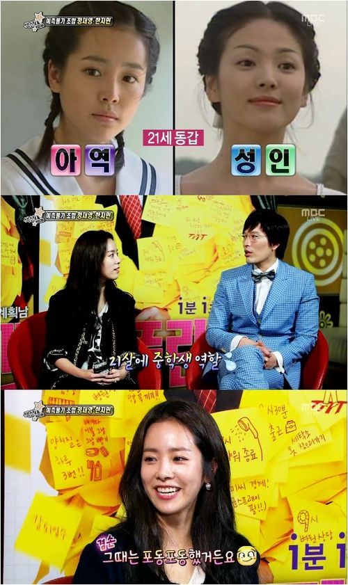 그는 21살 때 중학생 역할을 연기할 정도로 동안이었다. 한지민은 “내가 그 때는 포동포동했다”고 송혜교 아역을 연기할 수 있었던 동안 비결을 털어놨다.