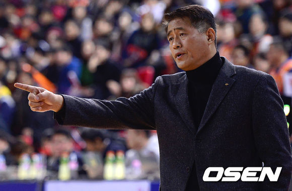 15일 오후 인천 삼산월드체육관에서 열린 '2013-2014 국민카드 프로농구' 인천 전자랜드와 고양 오리온스의 경기, 1쿼터 오리온스 추일승 감독이 작전 지시를 하고 있다.