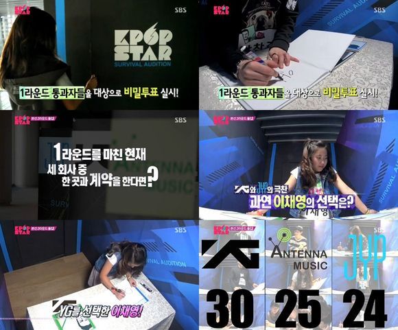 1라운드 본선 통과자들은 15일 오후 방송된 SBS 예능프로그램 '일요일이 좋다-서바이벌 오디션 K팝스타 시즌3(이하 'K팝스타3')'에서 각자 계약하고 싶은 회사를 선택, 그 중 YG 엔터테인먼트가 가장 많은 표를 받았다.