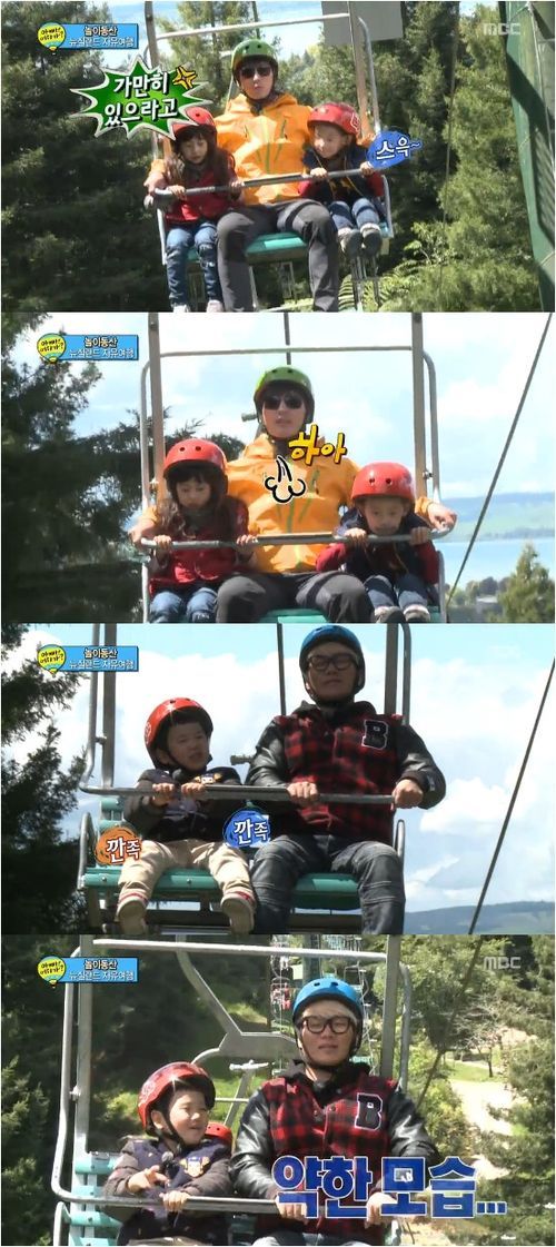 가수 윤민수와 축구 선수 출신 송종국이 고소공포증 때문에 아이들에게 정색을 했다.