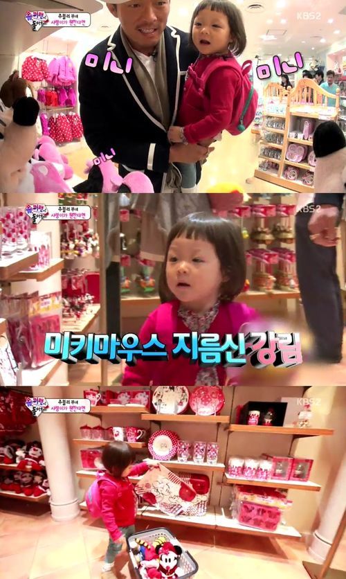 15일 방송된 KBS 2TV '해피선데이-슈퍼맨이 돌아왔다'에서는 평소 좋아하는 미키마우스 캐릭터 숍을 찾아 신난 사랑이의 모습이 등장했다.