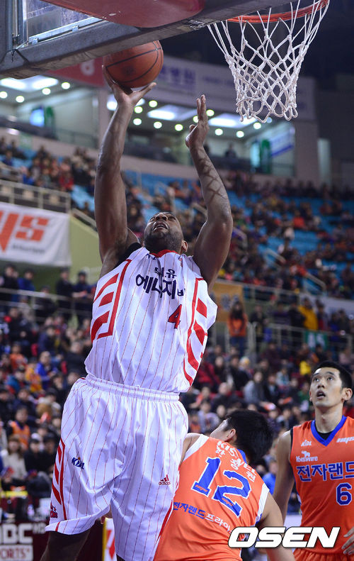 15일 오후 인천 삼산월드체육관에서 열린 '2013-2014 국민카드 프로농구' 인천 전자랜드와 고양 오리온스의 경기, 4쿼터 오리온스 윌리엄스가 골밑슛을 시도하고 있다.