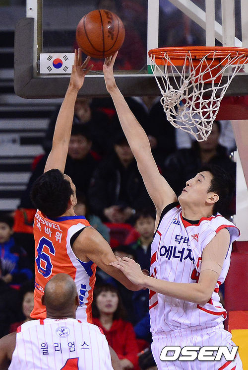 15일 오후 인천 삼산월드체육관에서 열린 '2013-2014 국민카드 프로농구' 인천 전자랜드와 고양 오리온스의 경기, 4쿼터 오리온스 최진수가 전자랜드 차바위의 레이업슛을 블로킹으로 막아내고 있다.