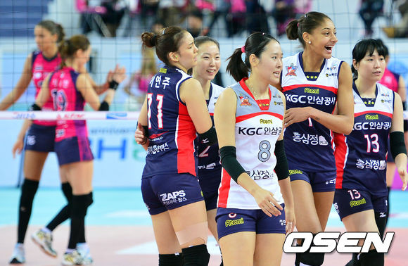 인삼공사는 15일 인천계양체육관에서 열린 ‘2013-2014 NH농협 V-리그’ 여자부 흥국생명과의 경기에서 조이스(26점)와 백목화(17점)가 공격을 주도한 끝에 3-1(25-21, 17-25, 25-15, 25-20)로 이겼다.