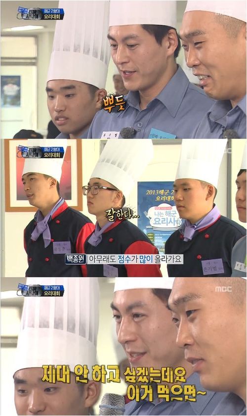 15일 방송된 MBC 예능프로그램 ‘일밤-진짜사나이’는 해군 제 2함대에서 펼쳐진 요리대회가 공개됐다. 이날 요리대회에는 프랜차이즈 음식점 성공신화 백종원, 이혜정 요리 연구가가 함께 하며 전문성을 높였다.