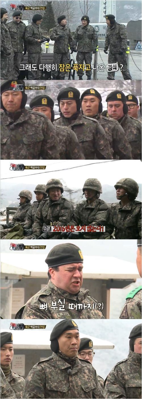 또한 함성소리가 들리며 훈련이 펼쳐지고, 백골부대에서 전사한 고인을 추모하는 경건한 의식을 치르는 과정은 살벌하게 펼쳐졌다. 해군 제 2함대 생활을 마친 멤버들의 군기가 잔뜩 들어간 모습은 시청자들의 웃음보를 자극했다.