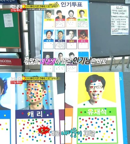 이날 방송에서 '런닝맨' 제작진은 여대에서 멤버들을 대상으로 인기투표를 진행했다. 많은 이들이 참여한 가운데 유재석을 제치고 개리가 1위에 올라 시선을 모았다.