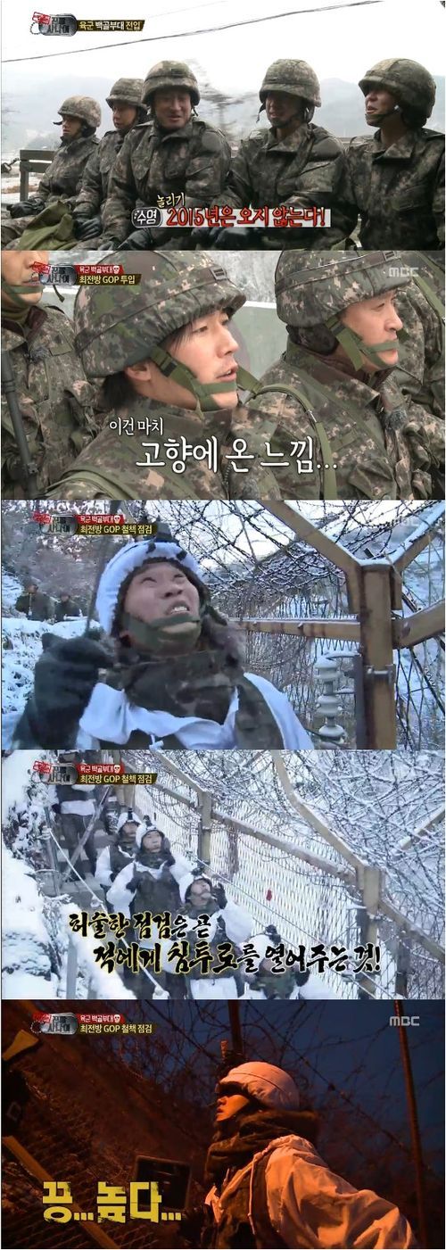 최전방을 지키기 때문에 엄숙할 수밖에 없는 분위기와 실수는 용납할 수 없는 막강한 군기, 그리고 전국 최저의 기온은 멤버들을 고통스럽게 했다. 근무에 실탄까지 지급되는 그야말로 살벌한 전운이 감돌았다. 철책에 둘러싸인 혹한의 처소에서 잔뜩 무장한 채 경계근무를 서는 멤버들의 모습을 보는 재미는 상당했다.
