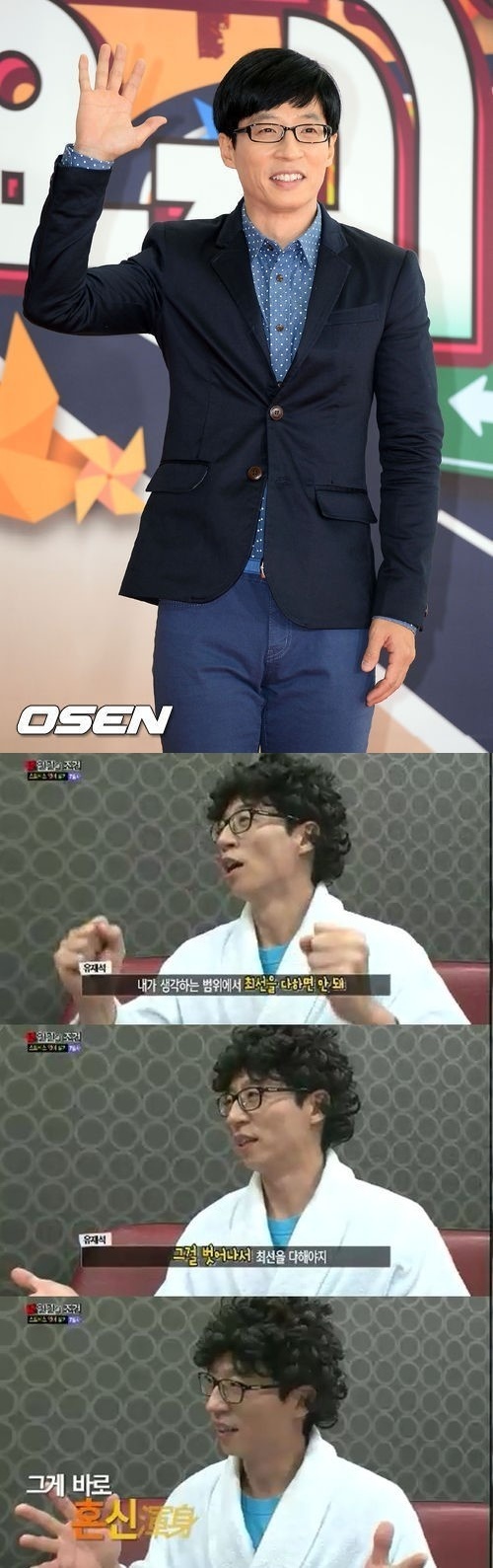 또한 유재석은 "내가 생각하는 범위 내에서 최선을 다 하면 안 된다. 그 범위를 넘어서 최선을 다 해야한다. 그게 혼신이다"라고 했다.