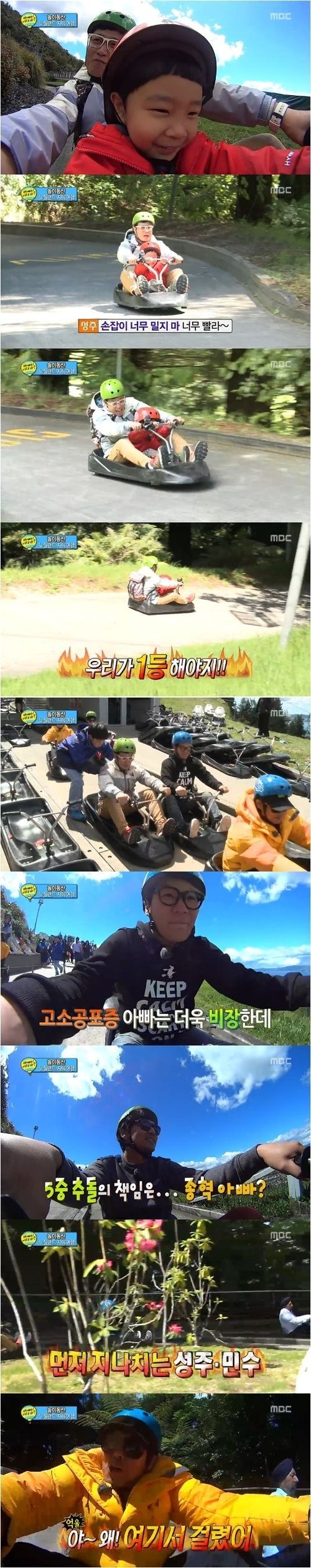 15일 방송된 MBC 예능프로그램 ‘일밤-아빠 어디가’에서는 아이들이 아빠들과 무동력 카트 대결을 벌이는 모습이 그려졌다.