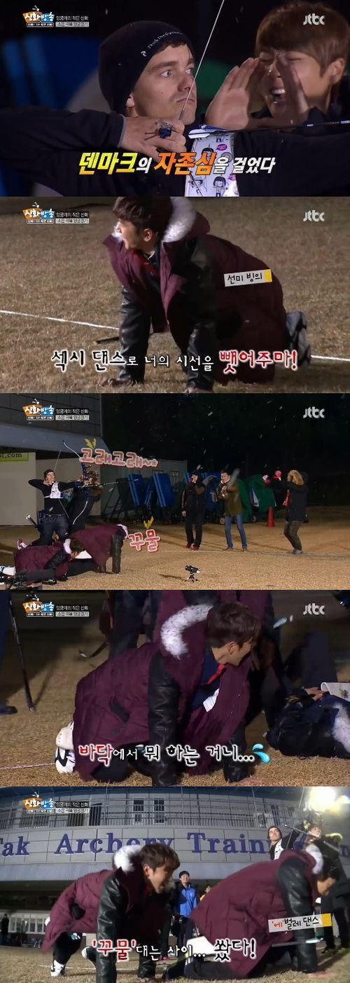 여기에 에릭까지 이민우의 꾸물 댄스 퍼포먼스에 동참해 좌중을 폭소케했다. 그러나 요한은 온갖 방해에도 불구, 여유롭게 9점을 쏘며 신혜성에게 승리했다.
