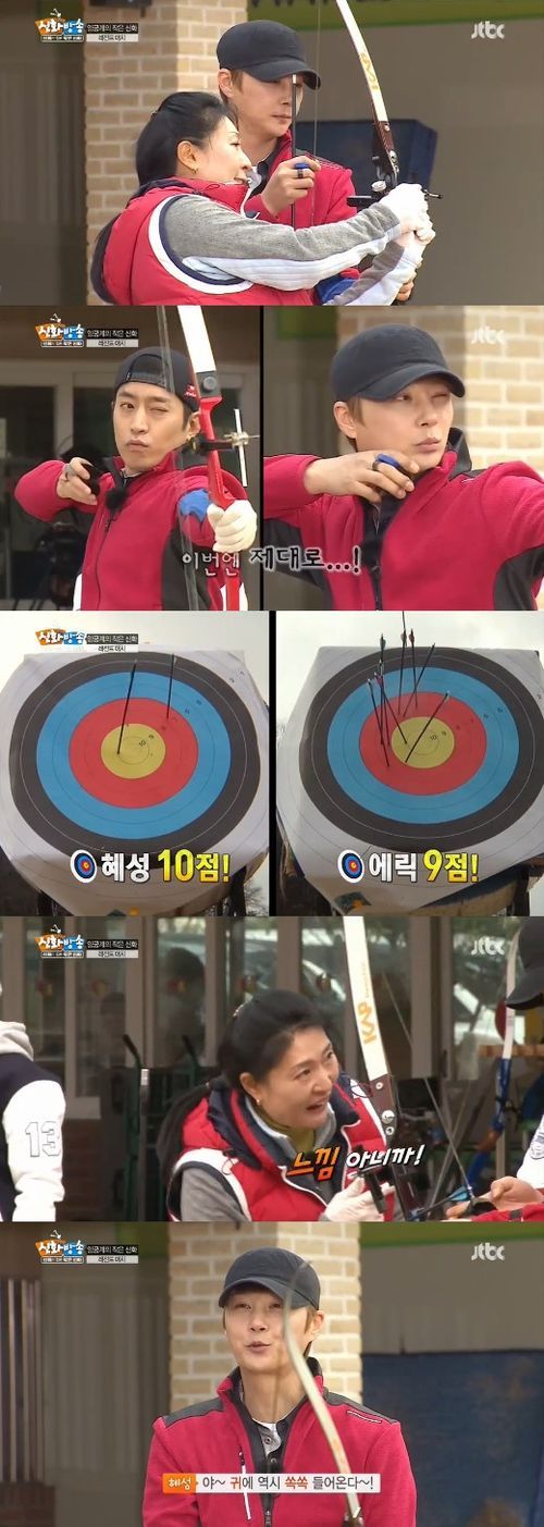 ‘신화방송2’ 엉성한 양궁 실력으로 구멍 멤버로 손꼽혔던 신혜성이 김경욱의 지도로 확 달라졌다.