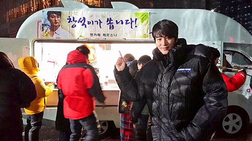 오창석은 지난 16일 오후 자신의 미투데이를 통해 "추운 날씨에 고생하는 스태프들을 위해 팬 카페에서 따뜻한 간식을 준비해주셨어요. 맛있게 잘 먹었습니다 항상 감사 드려요"라는 글과 함께 사진을 게재했다.