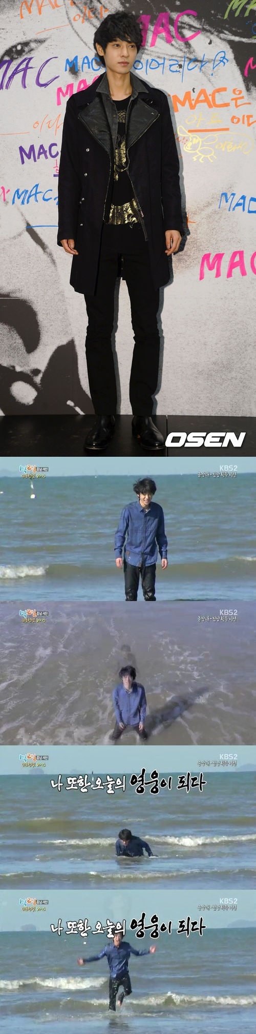 정준영은 15일 방송된 KBS 2TV '해피선데이-1박2일' 충남 서산 1탄에서 침낭을 얻기 위해 서해 바다에 몸을 던졌다. 시즌3 첫 입수.