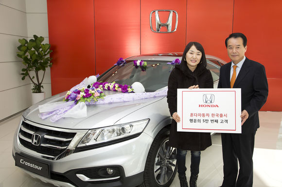 5만 번째 고객 탄생을 기념하는 이날 행사는 최근 오픈한 혼다코리아 수원 광교 전시장에서 이루어졌다. 크로스투어 구입을 통해 5만 번째 혼다 오너의 주인공인 선우인숙 씨(42세)에게 100만 원 상당의 상품과 함께 특별 선물을 증정했다.
