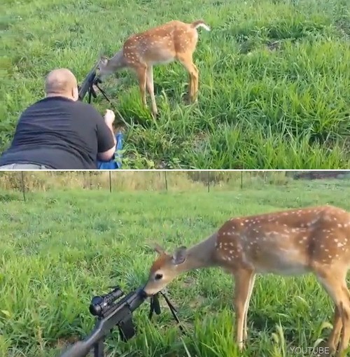 영상에는 아기 사슴이 사격장에 나타나더니 다가와 총을 핥고 사격수 주위를 맴돌면서 모두를 놀라게 하고 있다. 총을 겁내지 않는 어린 사슴의 행동은 SNS를 통해 빠르게 화제가 되고 있다.