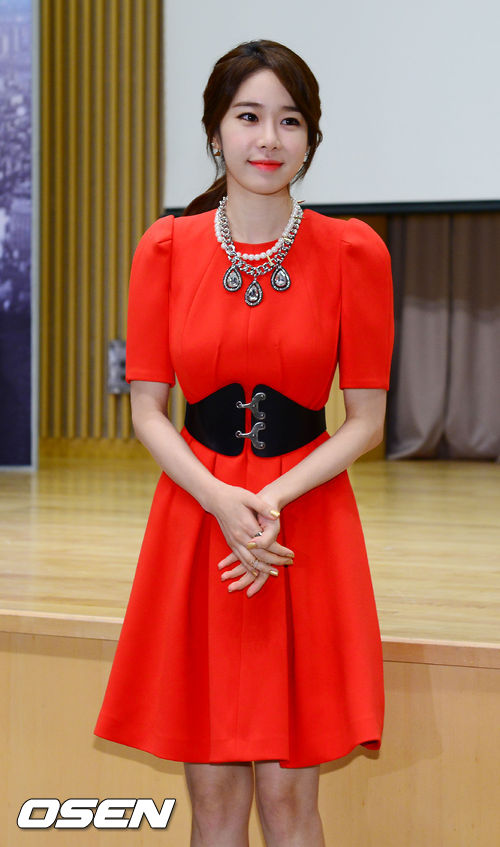 16일 오후 서울 양천구 목동 SBS 사옥에서 열린 SBS 새 수목드라마 '별에서 온 그대'(연출 장태유, 극본 박지은) 제작발표회, 유인나가 무대 앞에서 미소짓고 있다.