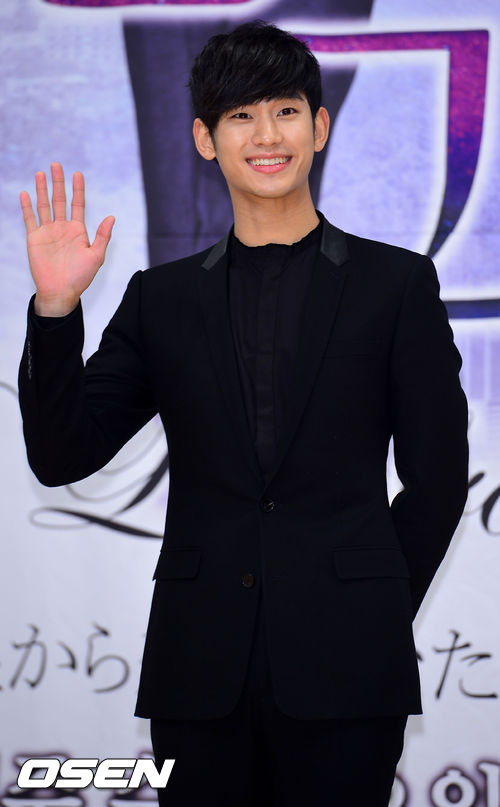 16일 오후 서울 양천구 목동 SBS 사옥에서 열린 SBS 새 수목드라마 '별에서 온 그대'(연출 장태유, 극본 박지은) 제작발표회, 김수현이 무대 위에서 포토타임을 갖고 있다.