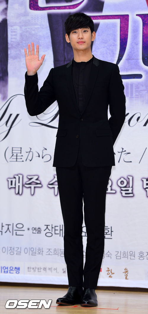 16일 오후 서울 양천구 목동 SBS 사옥에서 열린 SBS 새 수목드라마 '별에서 온 그대'(연출 장태유, 극본 박지은) 제작발표회, 김수현이 무대 위에서 포토타임을 갖고 있다.