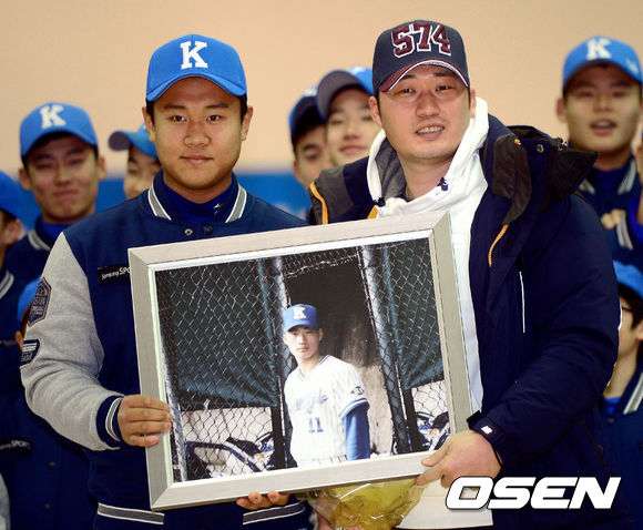 오승환이 경기고 후배와 포토타임을 갖고 있다.
