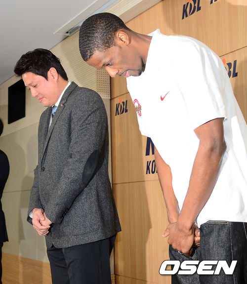 SK 문경은 감독과 에런 헤인즈가 사과를 하고 있다.
