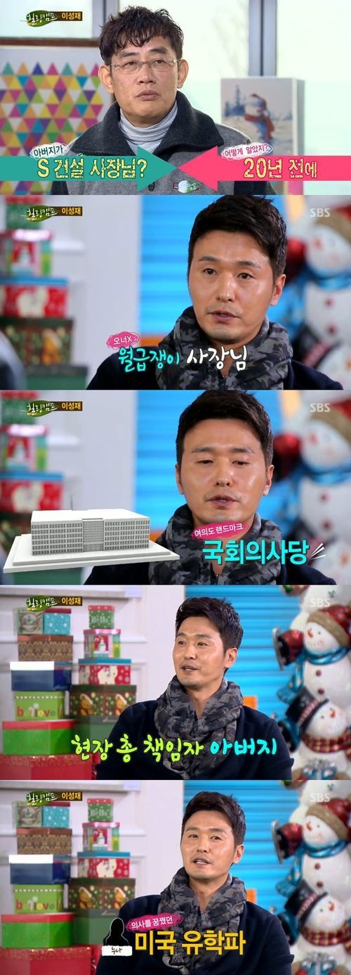 이날 이경규가 “아버지가 S건설 사장님이지 않냐. 연예계 대표 상속자 아니냐. 아버지가 회사 지분도 갖고 있다고 하는데”라고 말하자 이성재는 “월급쟁이 사장님이었다”고 전했다.