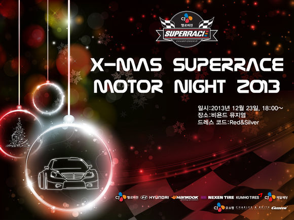 이날 행사는 다른 시상들과 차별화한 파티분위기로 화려하게 시작될 예정이다. 특히 ‘X-MAS SUPERRACE MOTOR NIGHT’라는 주제로 크리스마스 주간 흥겨운 분위기를 이어갈 수 있도록 깜짝 놀랄 만한 이벤트도 준비되어 있다. 뿐만 아니라 올해의 드레스 코드로 레드&실버를 공지하여 최고의 베스트 드레서도 뽑을 예정이다.