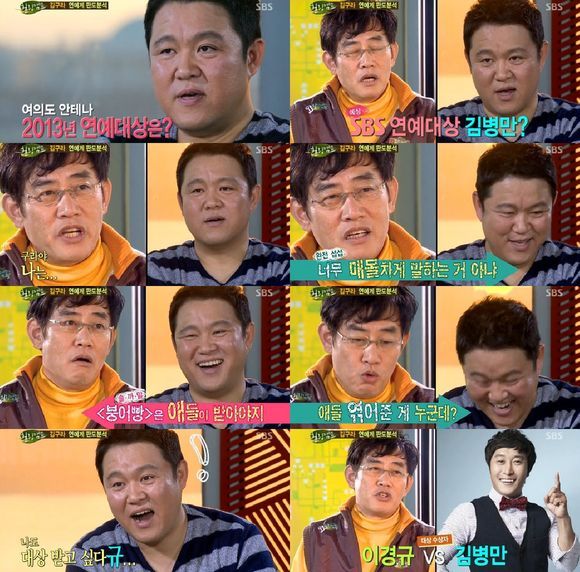 지난 16일 오후 방송된 SBS '힐링캠프-기쁘지 아니한가(이하 '힐링')'에서 이경규는 김구라에게 올해 SBS 연예대상을 물어봤고 이에 김구라는 "김병만이 유력하지 않을까 싶다"고 말했다.