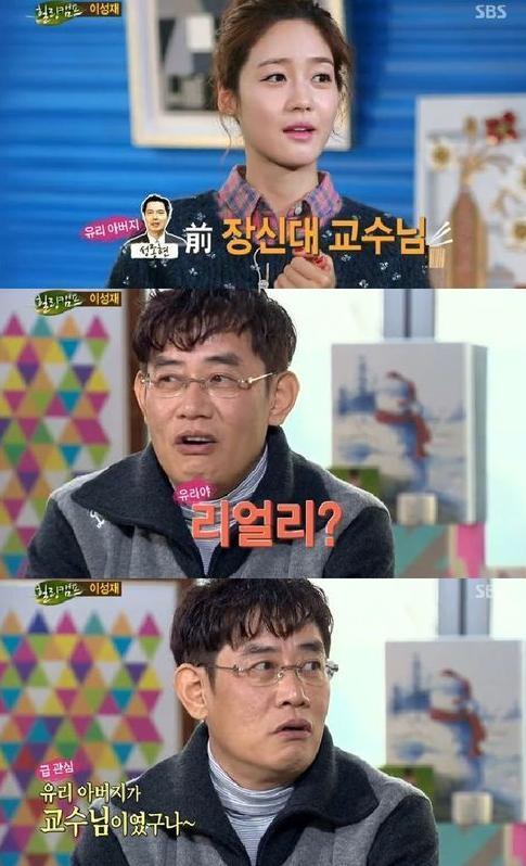 이에 또 다른 MC인 이경규가 ‘교수’라는 말에 놀라는 모습을 보였다. 이경규는 특유의 눈이 휘등그레지며 재밌는 장면을 연출했다. 이경규는 “성유리 씨 아버지가 교수님이었냐”고 말하며 웃음을 자아냈다.