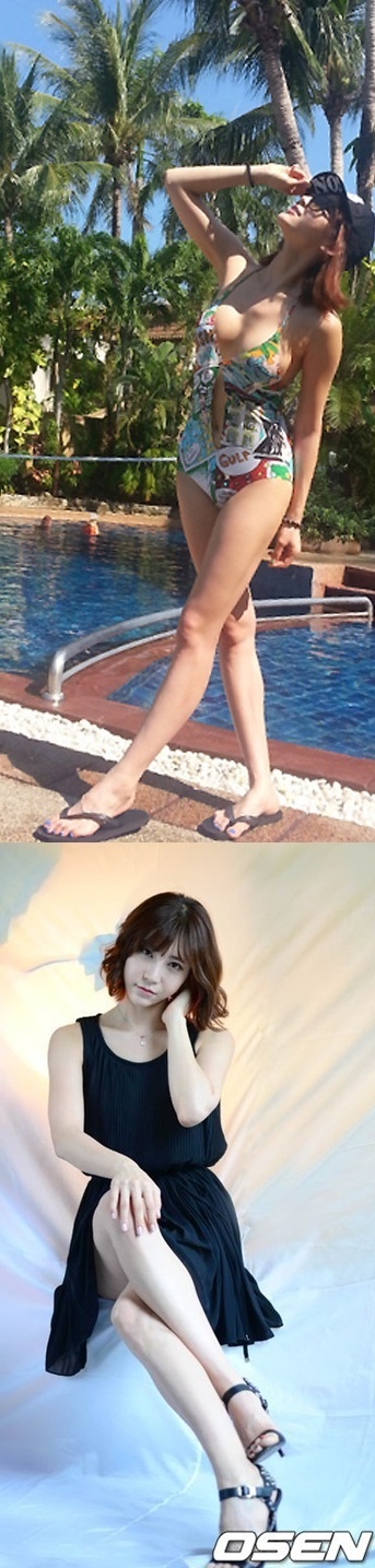 사진 속 구지성은 과감한 '카툰' 수영복으로 섹시함을 뽐냈다. 모자와 썬글라스로 가렸지만 숨길 수 없는 미모도 한껏 발산된 모습이다.