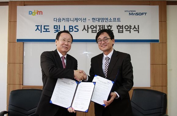 다음커뮤니케이션과 현대엠엔소프트가 지도 및 위치기반서비스(LBS) 분야에서 전략적 협업을 추진한다.
