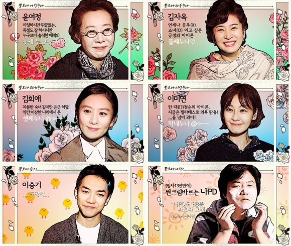 특히 돌발 상황에 대처하는 '꽃누나'들의 각기 자른 자세가 눈길을 끌고 있다. 윤여정은 당황하는 이승기에게 톡 쏘는 말투로 한마디 하면서도 칭찬으로 그의 기운을 북돋아줬고, 김희애는 부드러운 리더십으로 이승기를 이끌었다. 이미연은 가끔 욱하는 모습을 보이지만 자상하게 막내 이승기를 챙겼다. 그 중에서도 가장 돋보였던 것은 김자옥. 김자옥은 어떤 돌발 상황에도 흔들리지 않는 모습을 보여주며 느긋한 성격을 그대로 드러냈다.