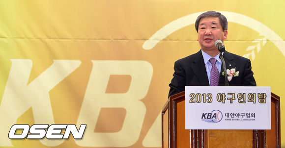 한국야구위원회 구본능 총재가 축사를 하고 있다.