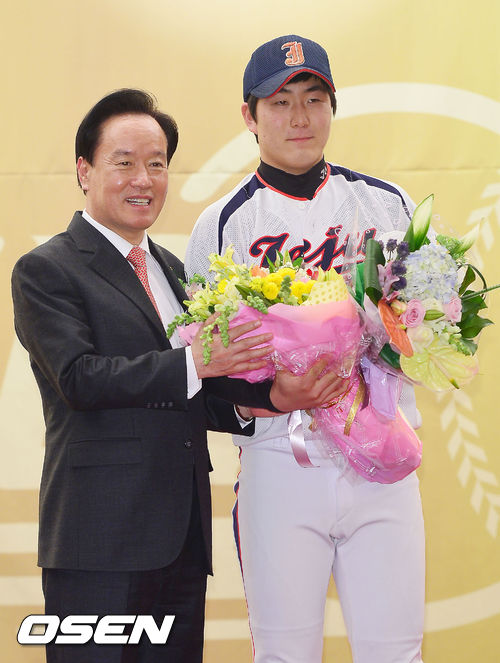 이영민 타격상을 수상한 조영우 (제주고등학교)가 포토타임을 갖고 있다.